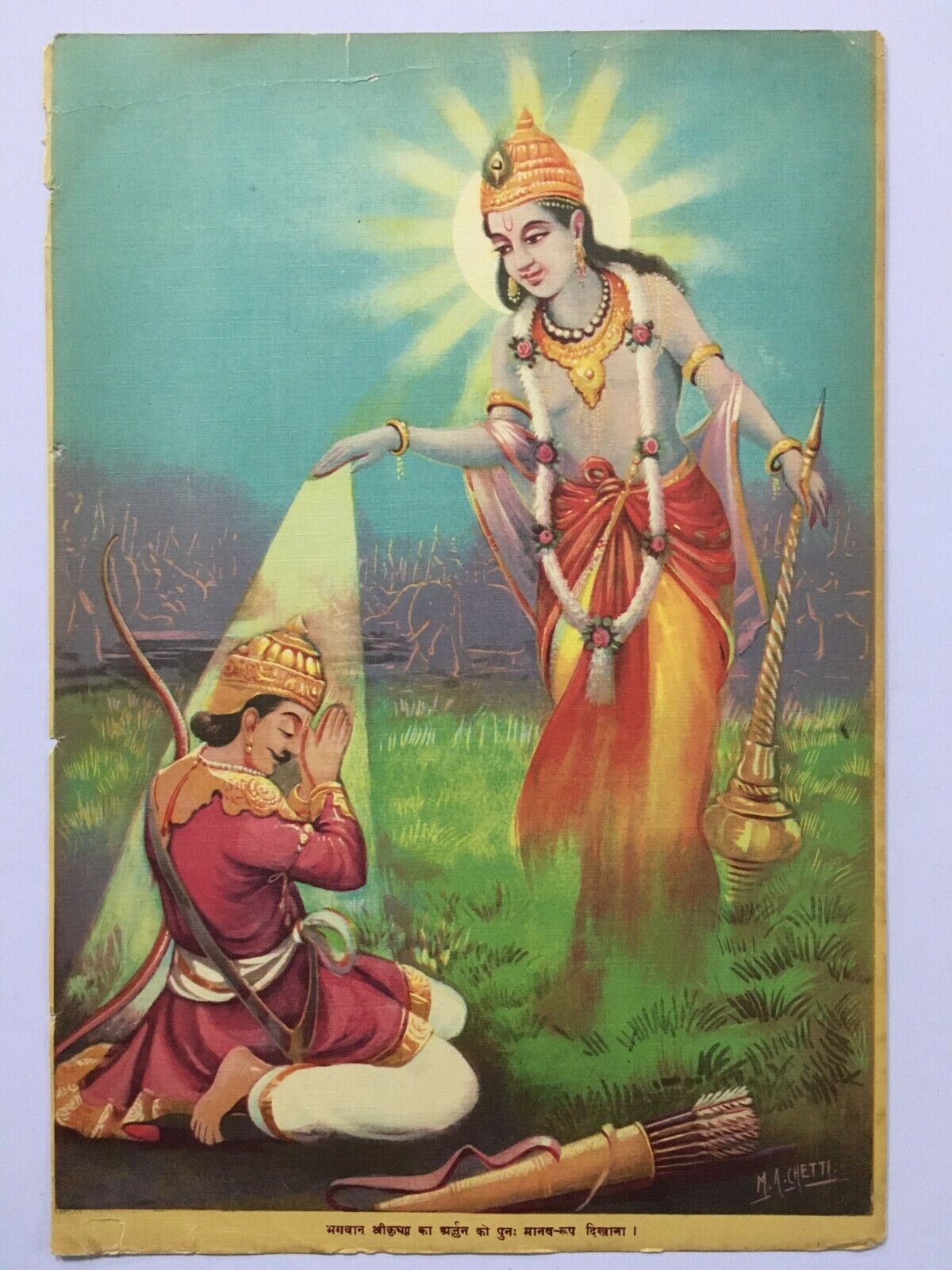Krishna showing his universal form to Arjuna, print from India from the 1940s