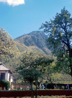 In one of the gardens is a house that is said to be the birthplace of Kuthumi in his last embodiment. Nearby there is another house with a spring of pure water, said to heal many forms of incurable diseases. Pilgrims come from all over to partake of the waters of this spring. Behind the gardens is a mountain, the physical anchoring point for the etheric retreat of beloved Kuthumi, whose flame of illumined peace can be felt throughout the region.