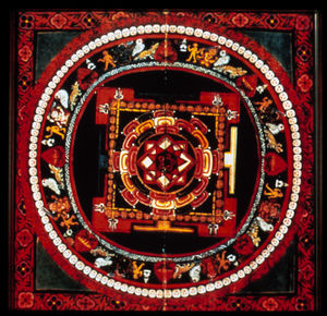 A yantra [Sanskrit] is a geometrical representation of a sound pattern, a diagram used in meditation upon a deity (primarily in tantric worship).
